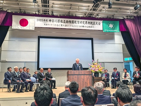 2026年1月21日(水)神奈川県私立幼稚園教育研究県央大会(主幹:相模原市幼稚園・認定こども園協会)が相模原市産業会館にて開催されました。今大会のテーマは「ともに育ち合い 一人ひとりが輝ける未来を」として、設置者園長が対面式、教職員はオンライン(YouTubeとZoom)のハイブリッド方式にて行われ、総勢800名を超える参加者になりました。